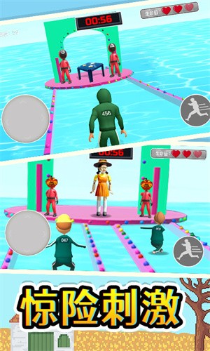 欢乐跳跳大冒险是一款很有趣的跑酷休闲游戏每一关都是新的小游戏需要你来通过,进入多人竞技场开始比赛,你要灵活一些的操作,游戏中有很多的挑战,小心被别人淘汰了。