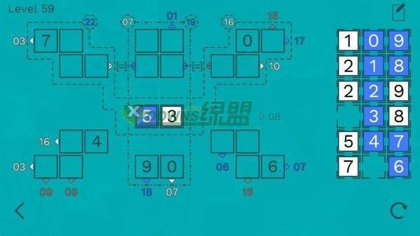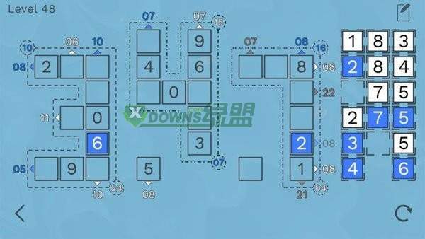 玩家拖动蓝色的数字,将它们合理的放置在数字阵列中,只有满足游戏的规则玩家才可以成功过关!
