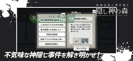 和阶堂真事件簿的第二部作品神隐之森来了,这次的背景故事发生在昭和年间的一个小村庄,玩家需要在游戏中根据剧情进行探索和解谜,拨开重重迷雾发现真相,与人物产生的对话都会包含有线索,您需要充分思考和注意细节才行,这样才能完成所有的谜题。