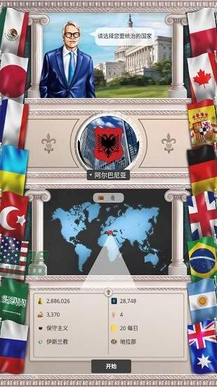 2、可以任意选择国家进入进行游戏