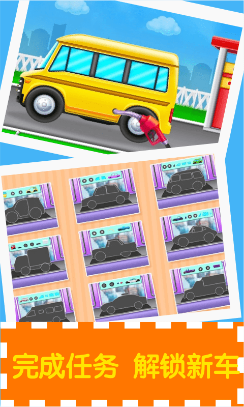 多个任务执行如洗车,修理汽车,汽车脏清洁,空气和燃料检查,汽车设计拼图等;