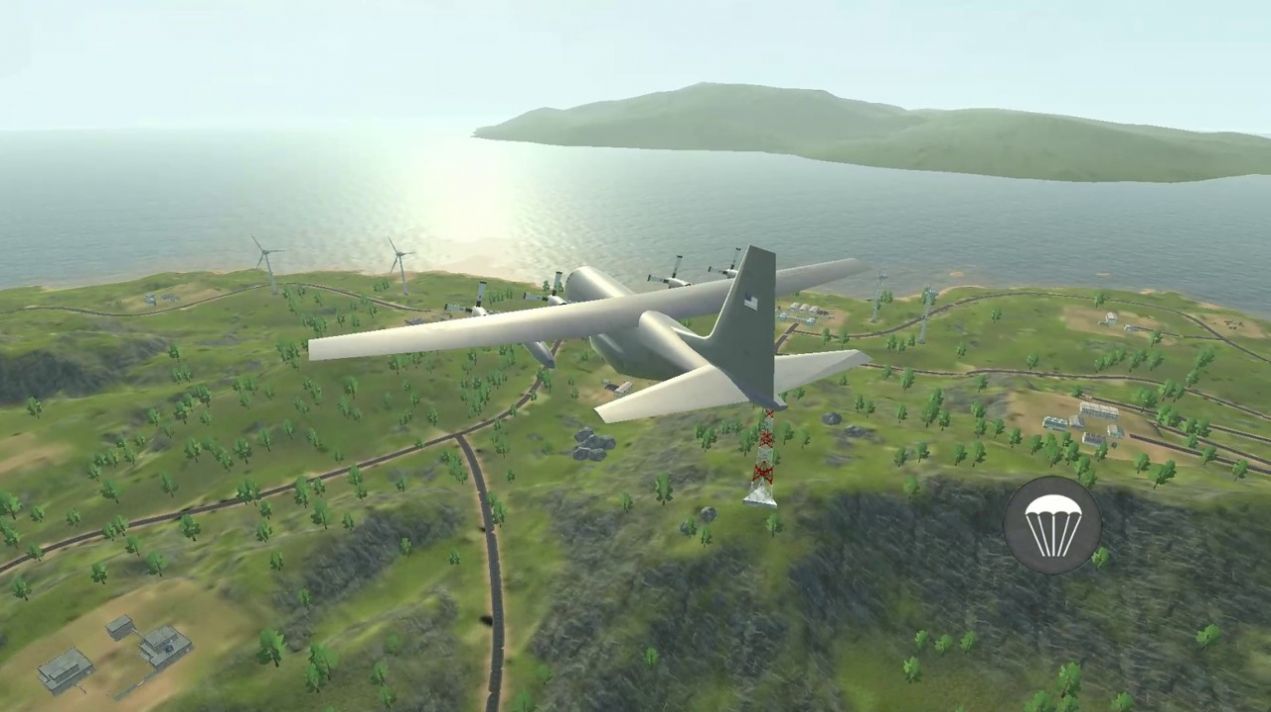 游戏开始后你就需要开始准备跳伞了,降落伞可以保证你安全的降落在地面。