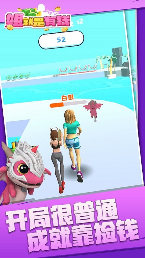 这里的赛道上有非常多的拆票哦,玩家要控制小姐姐去把这些金币收集起来,可以让你实现一夜暴富的梦想哦,你可以很顺利的成为一个富婆。