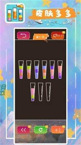 消消小水泡手游是一款风格卡通的休闲游戏。在这款游戏里,你需要将颜色相同的液体放在同一试管中,直至所有的试管中都只有一种颜色为止,你听懂了吗?听不懂没关系,开始玩你就知道了!