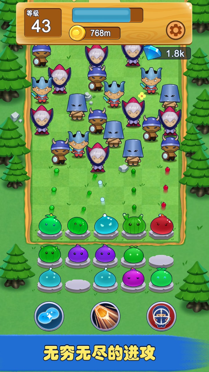 3、休闲合成玩法非常简单有趣。玩家只需滑动屏幕,点击合成史莱姆即可对抗BOSS。