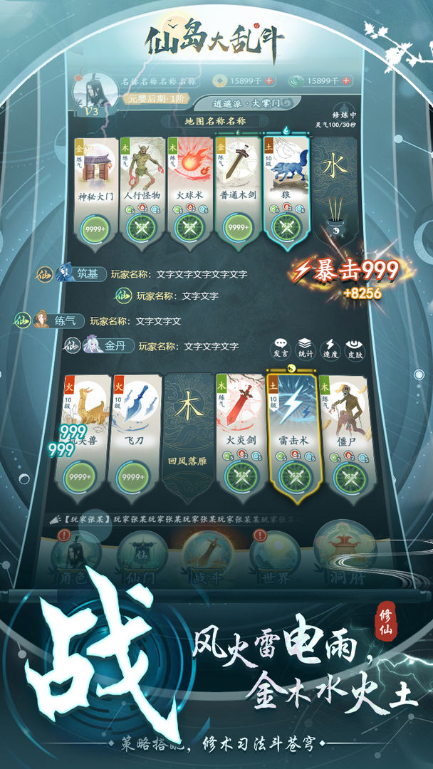 1、风火雷雨金木水火土-策略搭配,练功打天空。