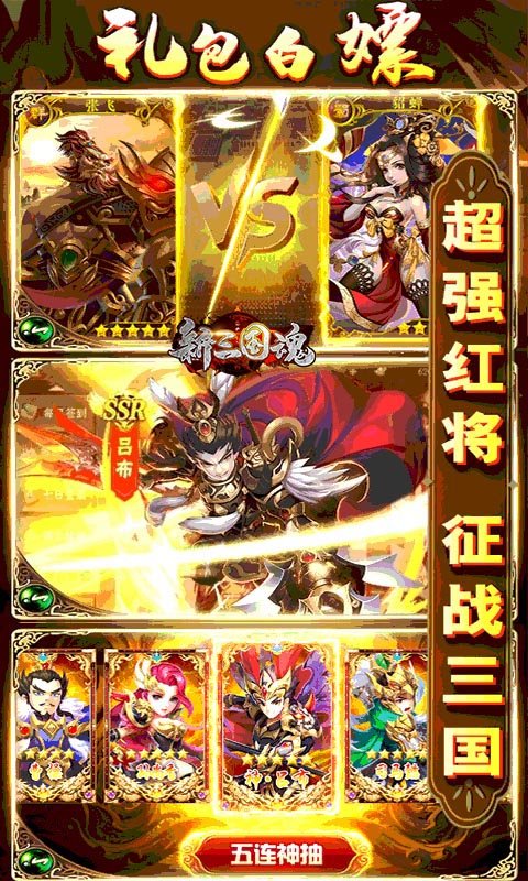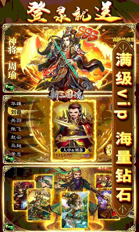 登录就有连抽赠送,轻松收集你喜爱的三国武将并策略组合,欢迎大家体验新三国魂满v版!
