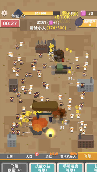 生存大挑战安卓版这是一款卡通风格的休闲益智游戏,玩好游戏的难度其实是不大的,玩家只需要点击屏幕就可以轻松的操作好了,不断的去消灭掉每一个在跑的小人,注意好有一些小人会躲避起来的。喜欢的玩家可以下载这款游戏。