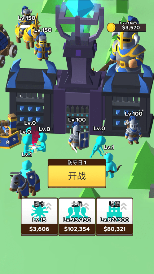 2、你可以消耗金币来升级不同的点,士兵、魔法等,还有城堡。