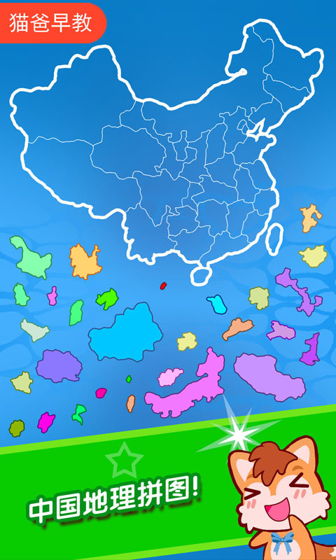 中国地图拼图,让宝宝在拼图游戏中,认识中国地理。中国省份的轮廓结合省份名称的提示音,让小朋友能够非常牢固的记住中国省份名称、轮廓和地理文字,让小朋友从小就成为地理学霸,提升自信心!
