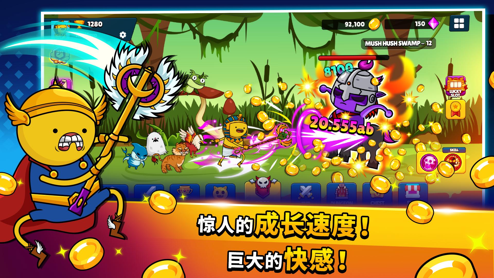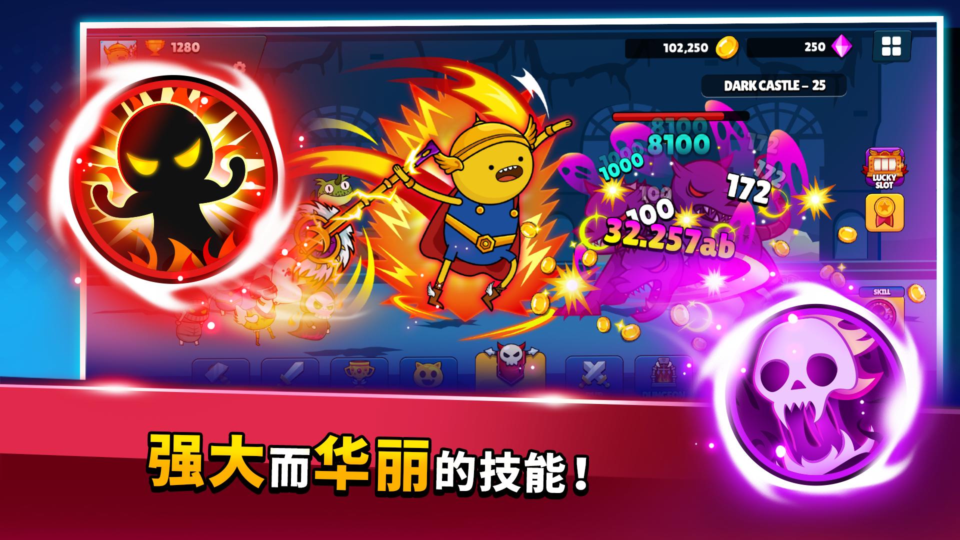 更强大和华丽的攻击技能可以挑战更多的老板和获得更多的资源。