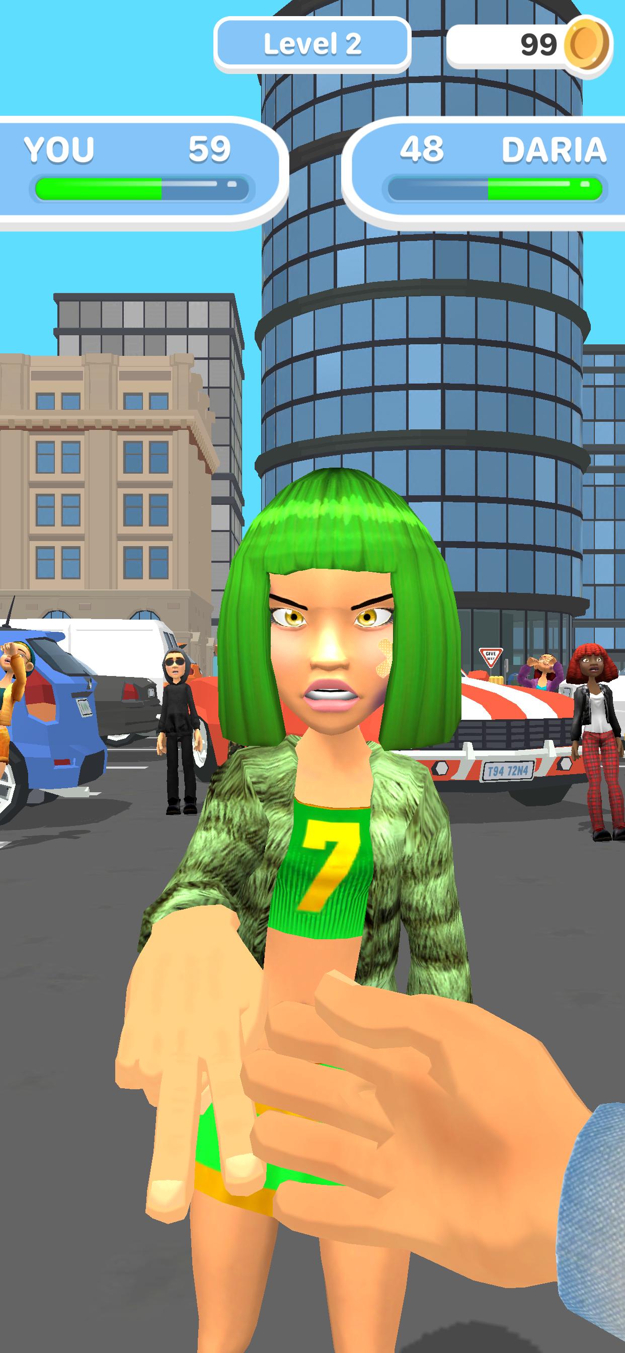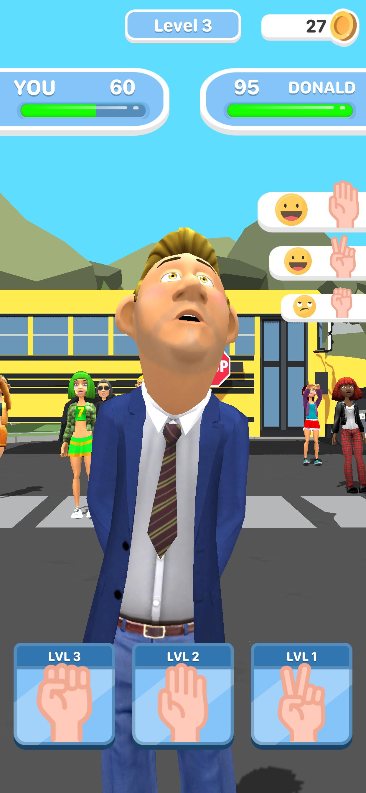 石头剪刀布战斗游戏Rock Paper Scissors Fight是一款卡通休闲趣味恶搞类游戏,在游戏的街头和大家一起加入剪刀石头布的大挑战,比试一下谁的更强,只不过小心惩罚可能是个耳光。