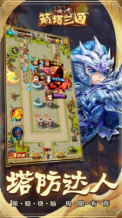 箭塔三国是一款三国题材的策略塔防类游戏,在三国背景下,招募各种武将,招兵买马,攻城略地,不断强化武将和装备,打造属于自己的城池,游戏还有十分不错的剧情,非常值得一玩。