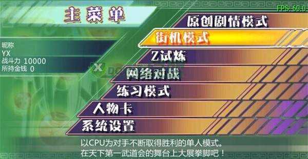 Z模式,里面包含了生存模式,时间模式和挑战模式。生存模式里面需要玩家用仅有的体力,尽可能的挑战更多对手,一旦体力没了,游戏也会直接结束。时间模式是指在限定的时间内将敌人打倒,这里是考验玩家战斗速度的好地方。挑战模式是按照特定的内容,来完成所给出的任务!
