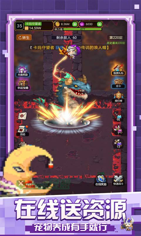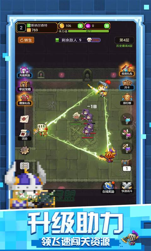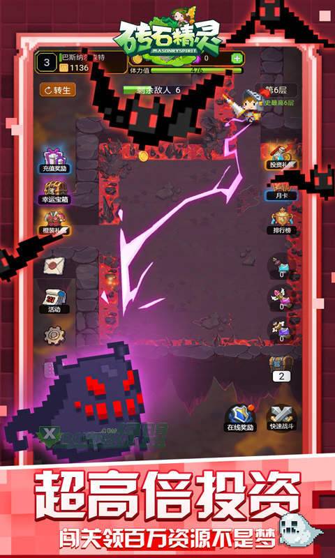 《砖石精灵》是专门为懒人游戏度身打造的一款像素风放置类英雄战斗游戏。创角送水晶*18888,金币*100W,满V特权!登录领百万水晶,升级更送传说装备,多样的冒险玩法,闯地下城、激斗竞技场、探索冒险秘境、挑战英雄试炼,全天候自动打怪,无限装备,无限经验,战斗升级根本停不下来!!!