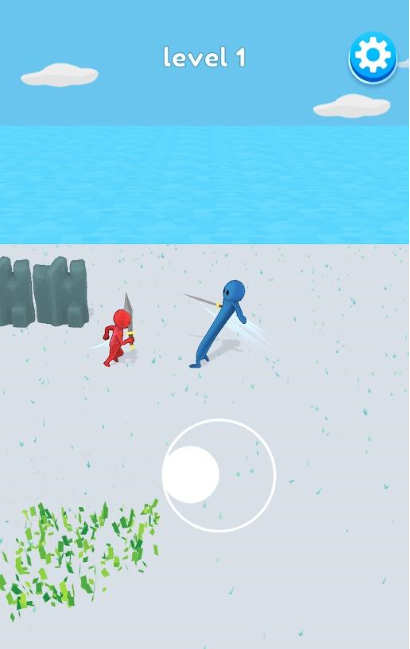 弯曲战斗是一款休闲动作娱乐类游戏,游戏中,玩家将操控一名剑士,躲避开同样是剑士的敌人,然后将面前的敌人全都杀光,要小心敌人的剑刃,锋利的剑刃一刀就能够切开所有东西,包括你的剑士。