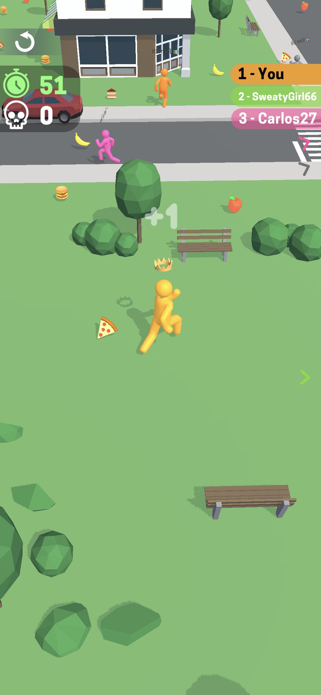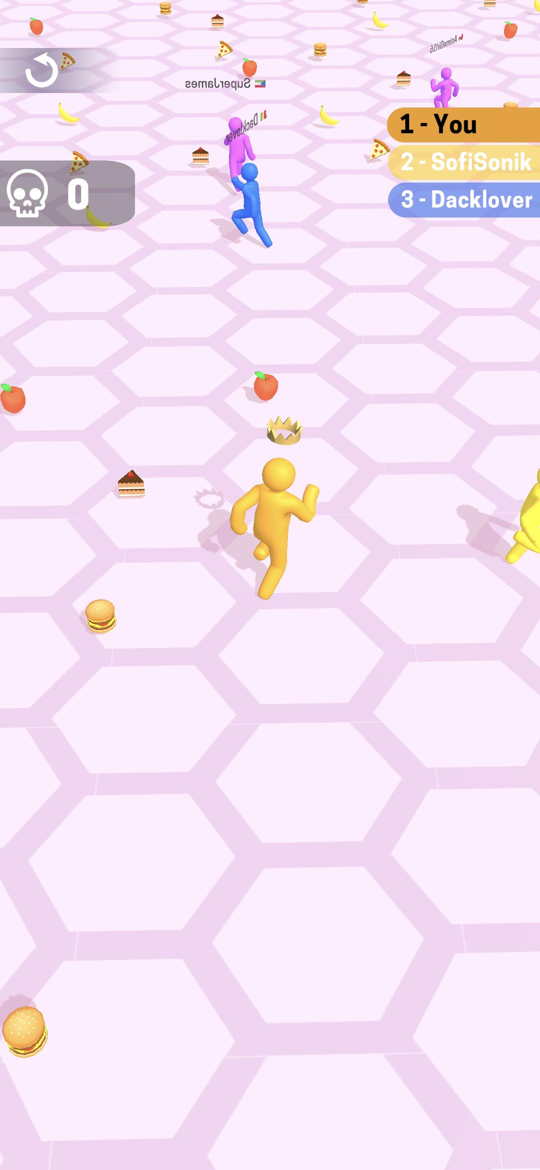 玩家可以和其他橡皮人开始争夺,抢夺场景中的食物,成为获得食物最多的人。