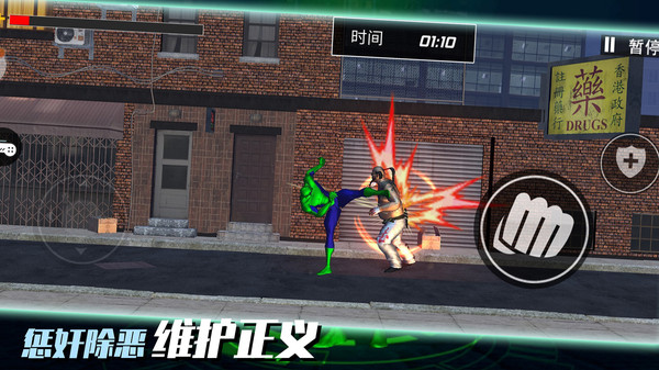 超级英雄大乱斗是一款动作冒险格斗类游戏,成为超级英雄和城市中的坏人们战斗,保护市民们的安全,丰富的武器可以解锁使用,享受多种格斗技术和酷炫的对决。