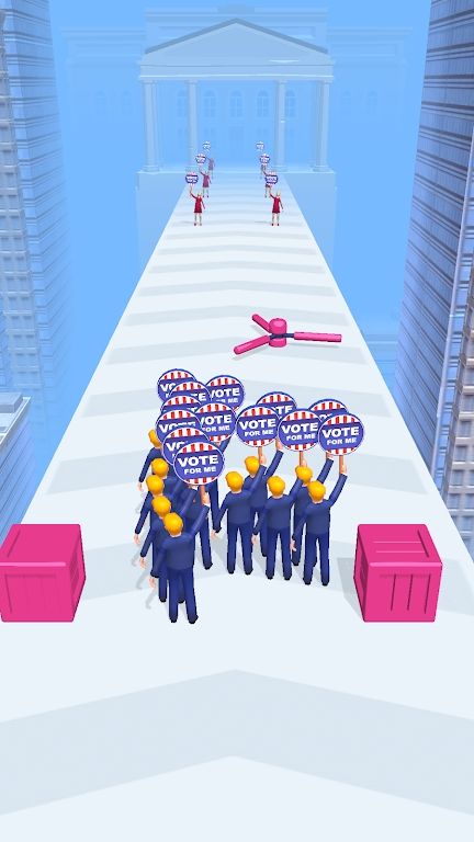 这是一款非常有趣且魔性的跑酷游戏,玩家通过闯关跑酷跑向终点,到终点之后就相当于投票成功,你的队伍所聚集的人数越多,投票数量就越多,竞选成功率就越高。