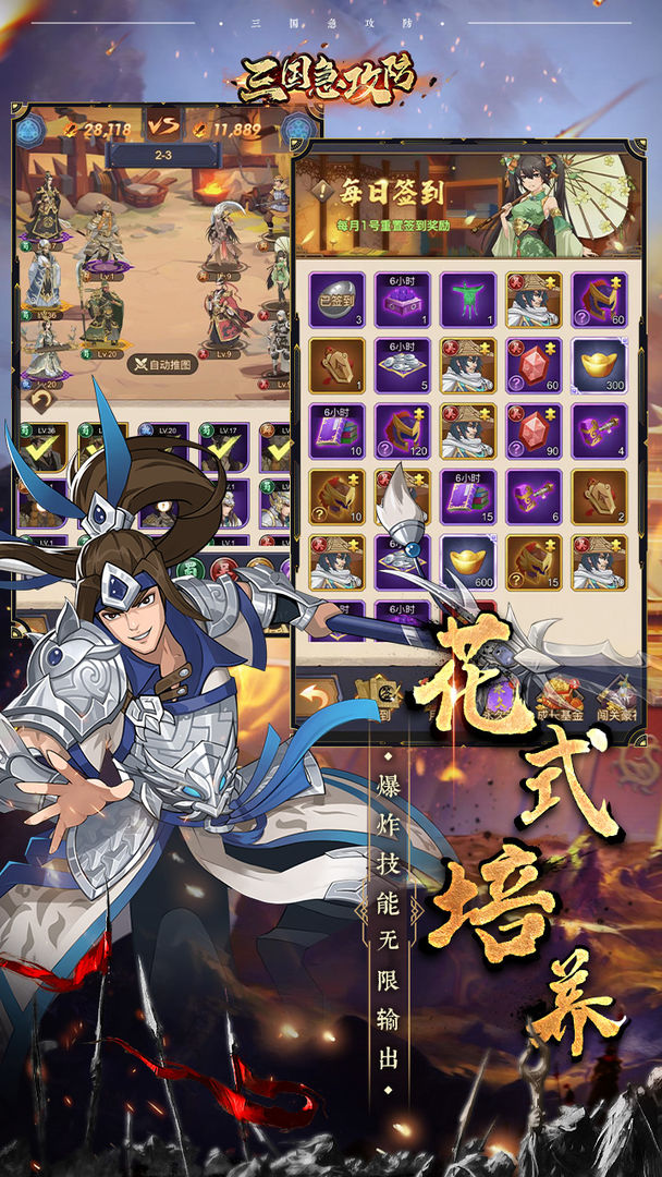 英雄阁三国急攻防是一款卡牌策略游戏,游戏Q版卡通画风,三国精彩的剧情,招贤纳士兵,自由的搭配战斗阵容,轻松的放置挂机收益,花式培养强将,对英雄阁三国急攻防感兴趣的小伙伴们快来下载吧。