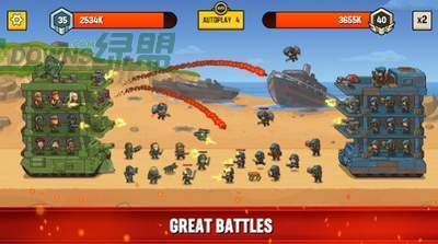 2、解锁武器和防御能力,士兵们的装备最强大,战争和塔防的竞技完美复刻出来。