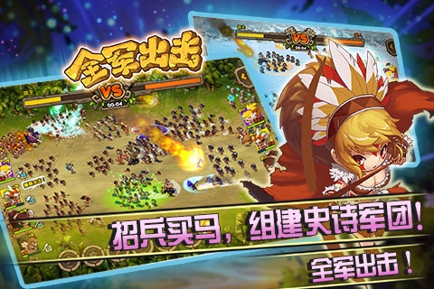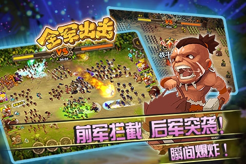 全军出击是一款史诗战争题材千人战场塔防游戏,涵盖城市建设,阵型布阵,冒险与建造。在全军出击的世界里你将招募到为信仰而战的勇士,为荣誉而战的英雄,甚至为某种目的降临人间的神祇;率领他们组建自己的千人军团,为了理想的新世界而战吧。多种策略玩法让你尽情享受游戏带来的快乐,前军阻拦,后军突袭!打造属于你的战斗!