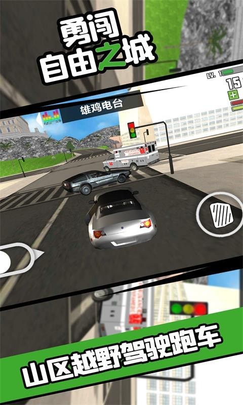 勇闯自由之城是一款开放世界冒险类游戏,玩家在自由之城中,拥有相当自由的行事方式,随意探索城市,驾驶汽车在城市中奔驰,在城中为所欲为,释放自己的压力,快来体验吧。