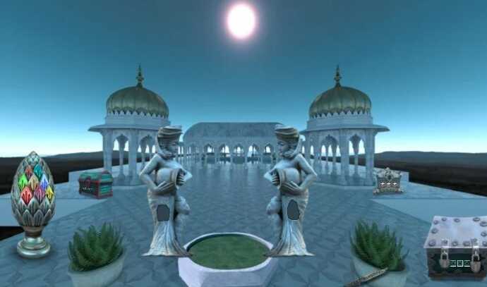 您现在应该尝试通过组合使用各种物品并解决难题来逃离宫殿。