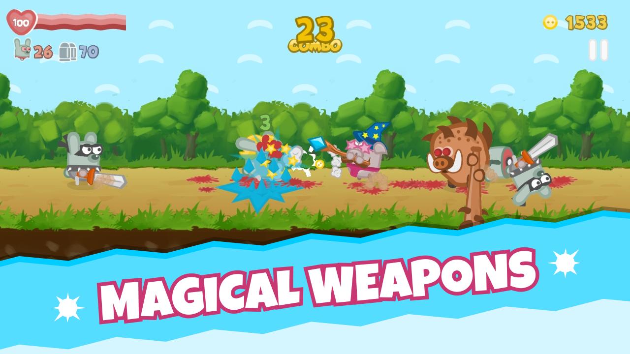 包括吃熏肉的僵尸、愤怒的兔子、跳跃的忍者、奇怪的骨头扔骨头和摆动的斧头。