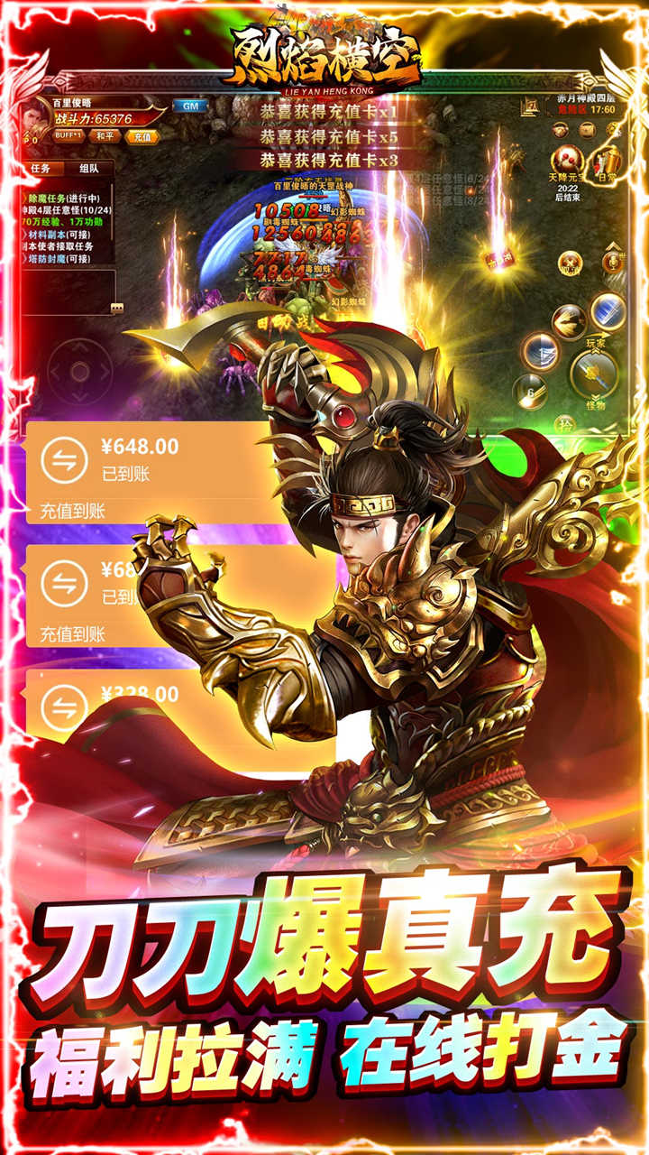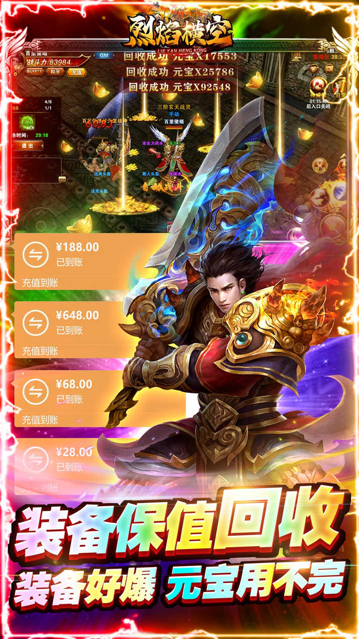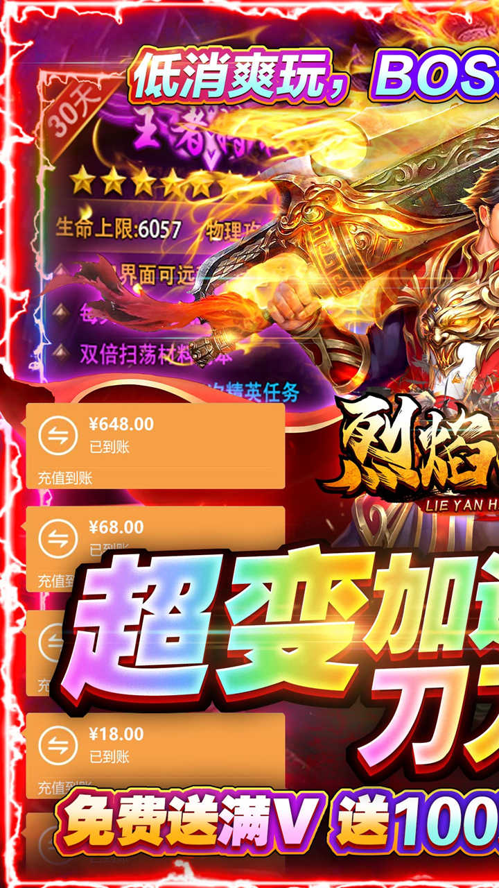 烈焰横空是一款角色扮演冒险类游戏,玩家在游戏中能够玩到纯正的传奇游戏,不仅如此,游戏还是疯狂加速的传奇,上线就送100W元宝,V10,惊喜福利送不停,不需要玩家冲一分钱,快来体验吧。