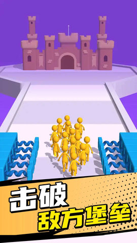 加入人群中,开始城市竞赛,战斗并到达城堡,让我们一起在游戏中不断的奔跑,在途中不断地聚集人,收集人群;