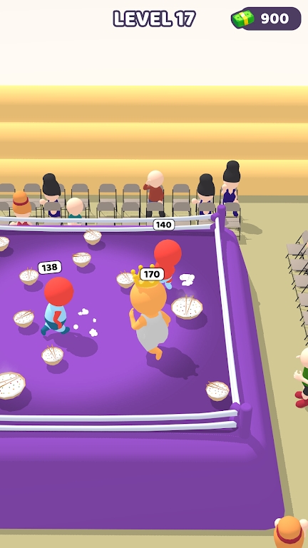 腹部隆隆声是一款充满乐趣的动作类游戏玩家在游戏中需要控制自己的小人物进行大胃王比赛,游戏的画风鲜艳,游戏里有超多的食物,在擂台上将会有许多美味的食物供你选择,喜欢这款游戏的玩家们可不要错过了。