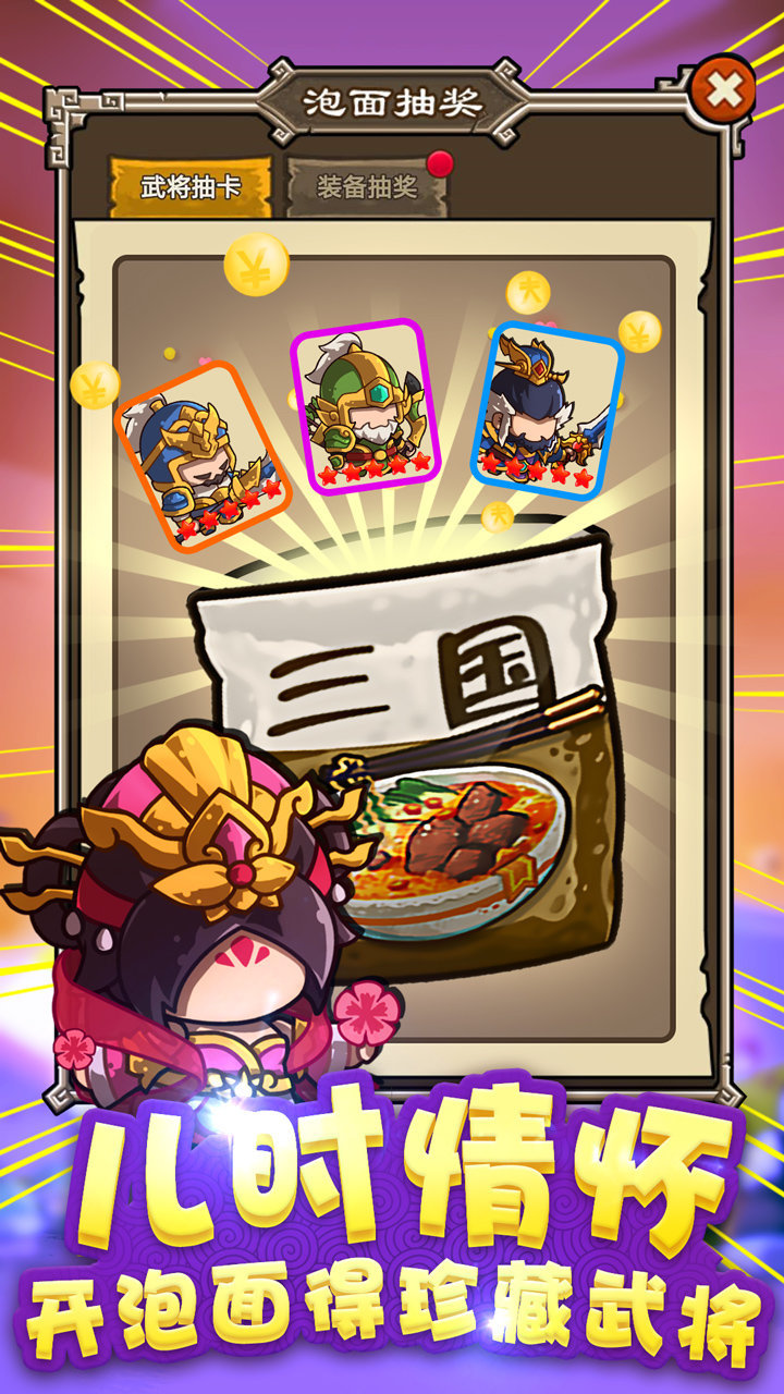 吕布,关羽,赵云等三国志武将们的传奇故事,通过强化装备和武将,组建精英强队。