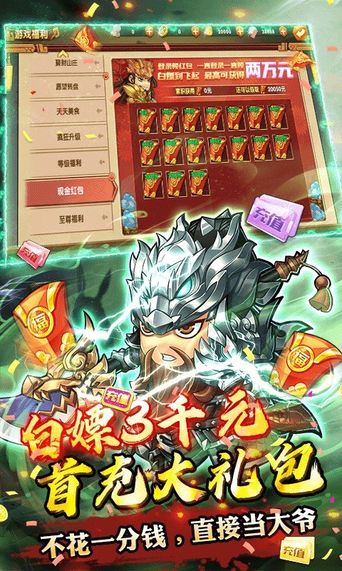 推图副本可领取5000元真充卡,升级达到指定等级,可再领1000元真充卡;无需充钱即可体验土豪玩游戏的爽感!