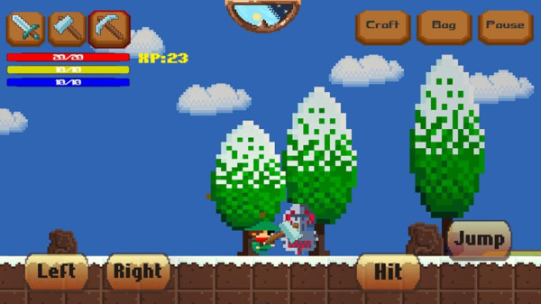 像素生存冒险是一款经典的生存游戏,设置在一个精美的像素世界中。欢迎来到的美丽而危险的世界!您最初的目标是寻找食物和饮料,收集资源和制作工具,但要小心怪物偷偷袭击你!使用向右和向左箭头键来控制角色的动作,使用红色按钮攻击并收集资源。