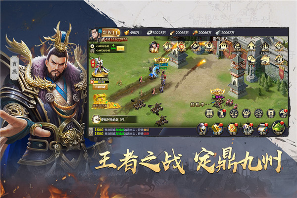 创新国战玩法,场面恢弘,争夺王位,一将功成。真正实时战斗体验!招贤纳士,招募仁人志士为你出谋划策。