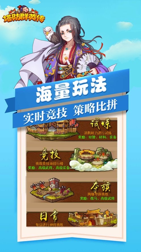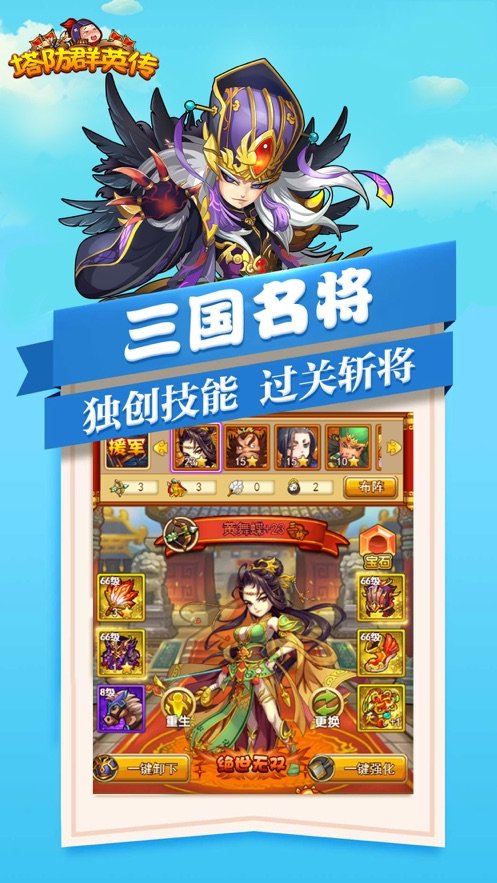 塔防群英传正式版是一款独具创意的3D塔防游戏主将的养成采用武将养成+经典塔防的游戏玩法,塔防群英传正式版正式版很少有人知道怎么下载,海量三国武将英雄等你选择,完美对战即时战斗,有喜欢的朋友快来下载玩耍吧。