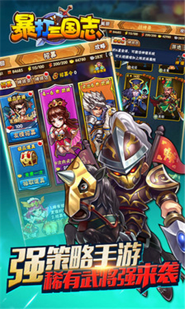 暴打三国志本站是广州千骐动漫有限公司以三国历史背景制作的一款卡牌游戏。登陆暴打三国志将会进入三国战乱时代操作战斗也只需要点击屏幕就好了,讨伐三国各路诸侯豪杰,与兄弟一起血战沙场,现在就来征战三国吧。
