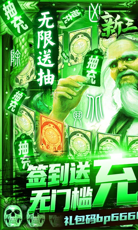 - 新手礼包:铜币10W,烧鸡*2,银宝箱*3,银钥匙*3