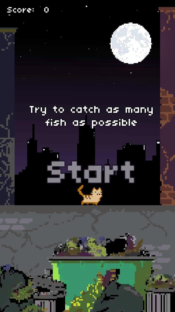 像素的画风,玩法很简单,带着猫咪获取小鱼积分。