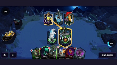 2、玩家控制一个英雄与敌人(人类或 AI)战斗,玩家都使用可以与召唤到比赛场地的卡片进行战斗,合理使用这些卡牌。