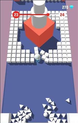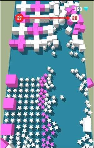 玩家控制白色小球不断前进,你所需要做的就是不要让小球撞到带颜色的色块上;
