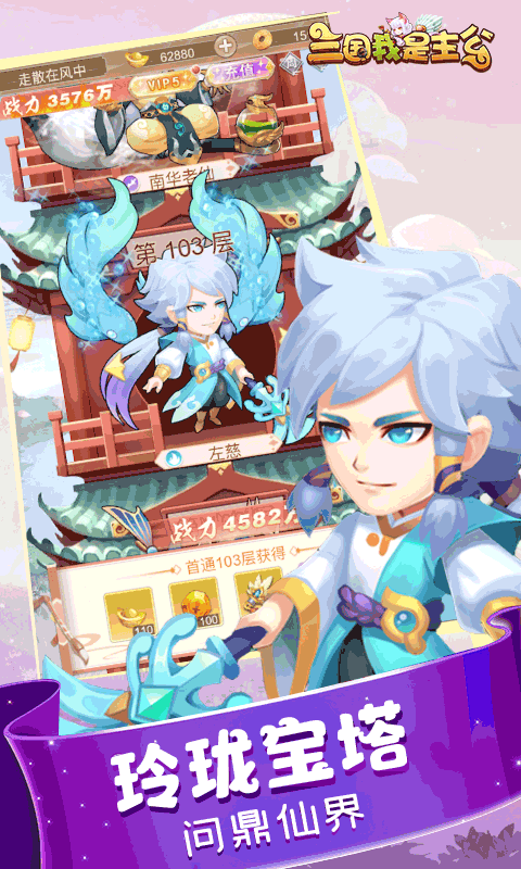 三国我是主公是一款三国题材的休闲放置卡牌游戏,游戏以通关主线关卡为主要玩法。玩家在游戏中可以收集武将组建最强阵容挑战主线关卡。主线关卡会产出主公经验,并且玩家离线的时候挂机队伍也会不停的挑战主线关卡获取主公经验。主公升级后可以大幅提升队伍的实力。除了主线关卡外,还有玲珑宝塔和精英副本供玩家挑战,挑战玲珑宝塔可以获取武将穿戴的装备,挑战精英副本可以获取低品质武将。获取的低品质武将可以拿来合成高品质的武将。 玩家也可以参与多项PVE活动和PVP活动。和全服玩家共同除魔的全民除魔,共同击杀世界BOSS。挑战武道大会,通关神魔试炼。参与三界夺宝争夺稀有符文,加入帮会参与帮会战。