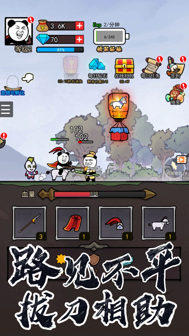 1.游戏简单易上手。点击屏幕,熊猫人会冲上一匹马打败敌人。