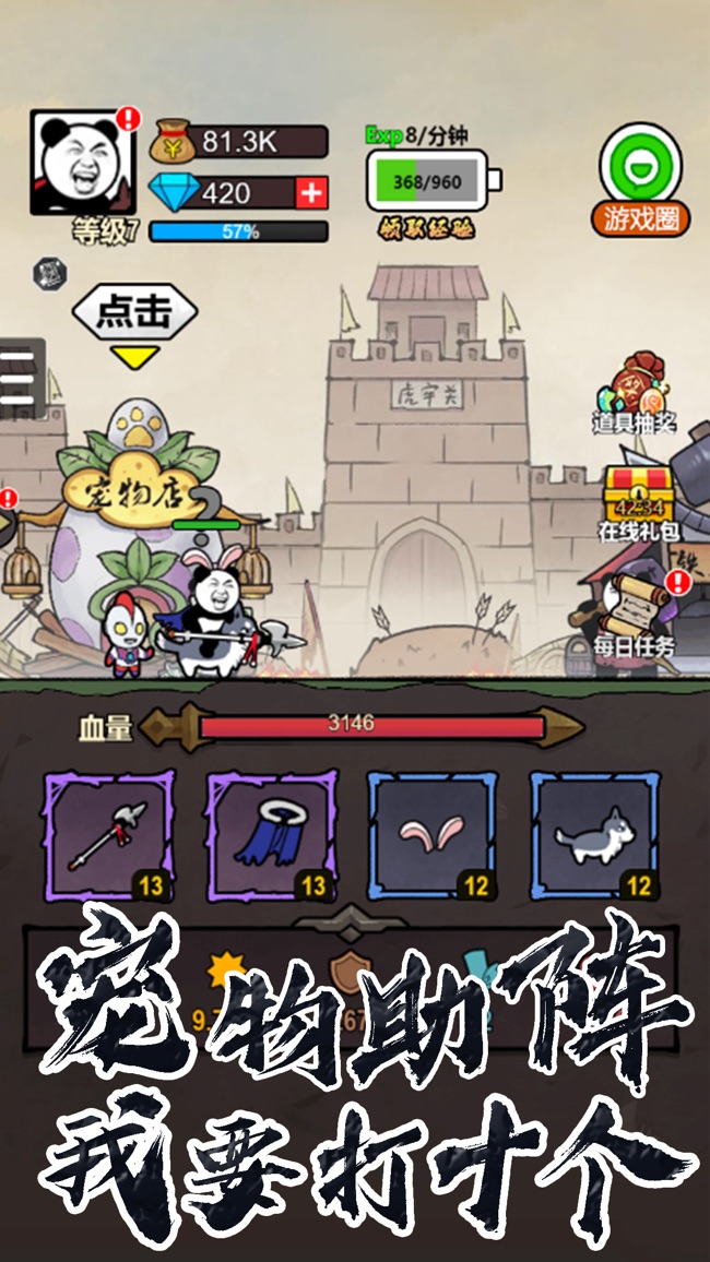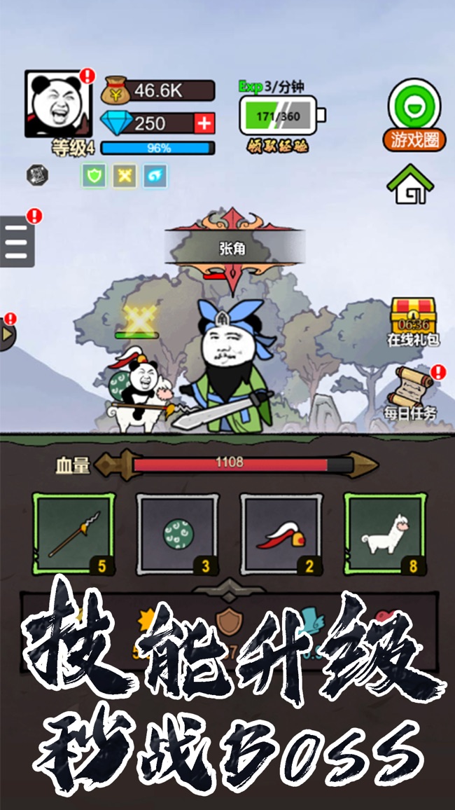 本游戏以流行的熊猫头表情包为主角设计。