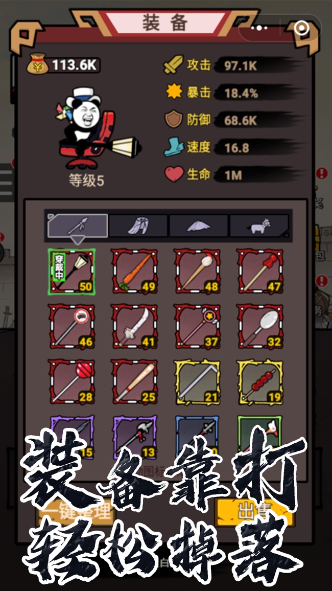 3.一般熊猫还可以给自己的身体装备装备,16个烤架可以装东西。