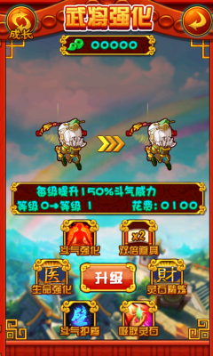 4、游戏中可以获得各种道具,也可以在武将强化界面进行永久升级;