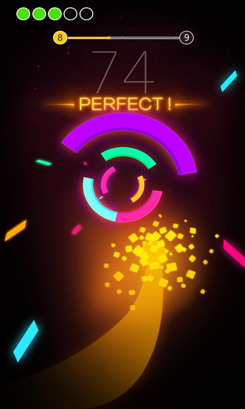 2、玩家需要控制好球,穿过相同颜色的障碍物,尽可能高。