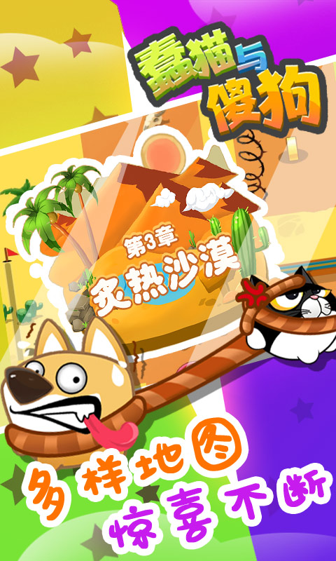 蠢猫与傻狗以清新的卡通游戏风格和有趣的玩法,为您带来前所未有的指尖体验。简单的操作方式,不仅有爆笑的游戏画面,还有丰富的关卡等你来挑战。多种不同的游戏场景和轻松欢快的背景音乐值得一试,游戏上手容易,可玩性强。喜欢的玩家赶紧下载蠢猫与傻狗吧!