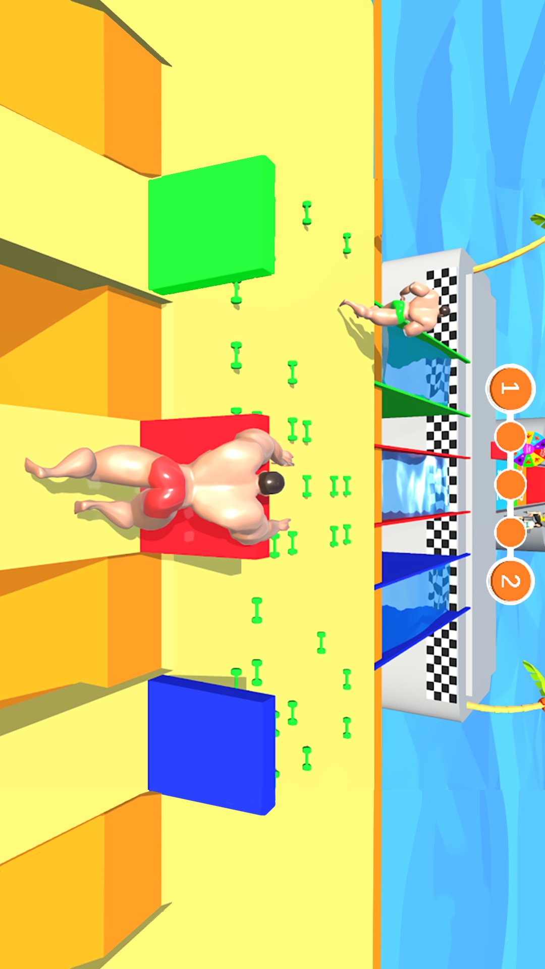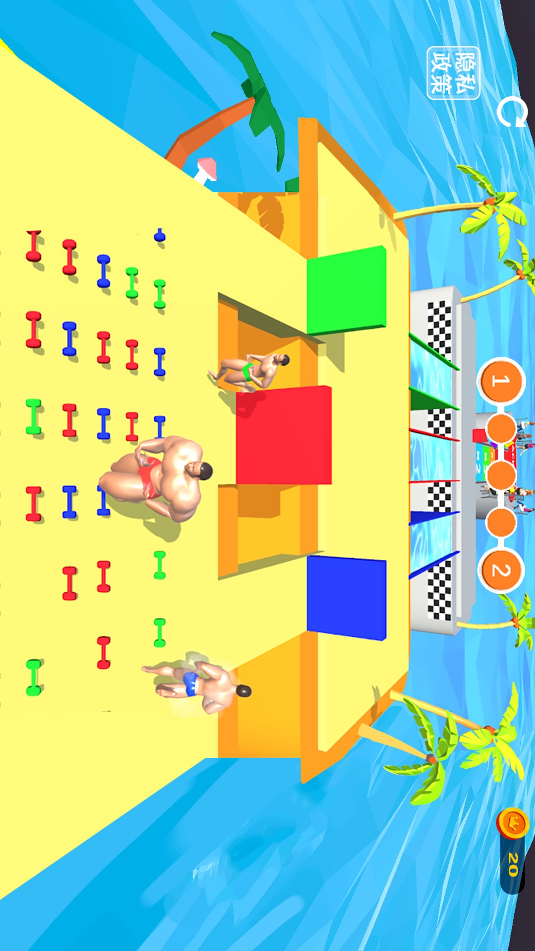 2、可以解锁不同的肌肉男角色来完成关卡的挑战,从瘦弱做起,通过不断拿起杠铃锻炼自己。